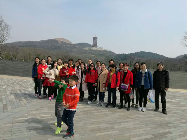 在牛首山門前合影“到此一游”